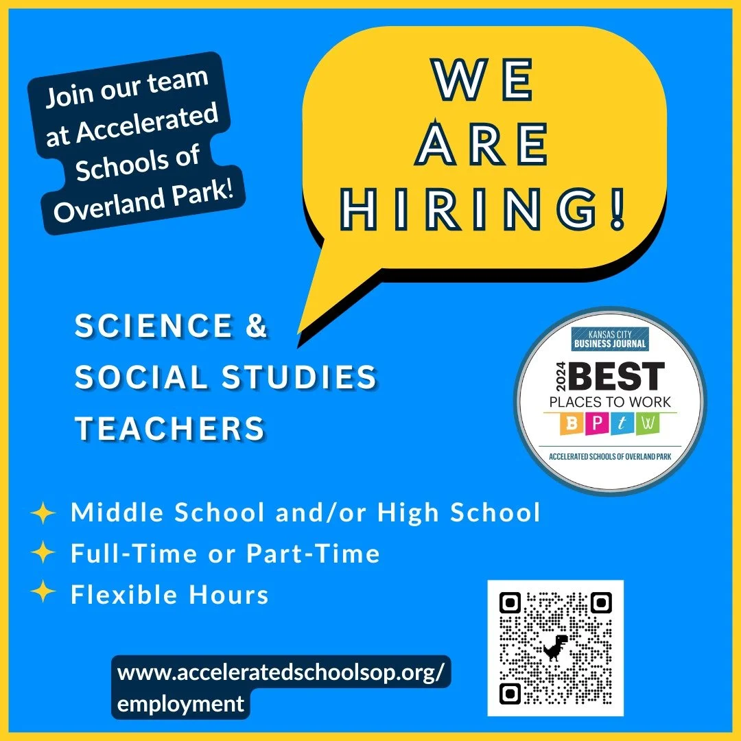 Accelerated Schools of Overland Park (ASOP) is a nonprofit, private school in Johnson County accredited by the State of Kansas and Cognia. We offer a co-educational, full-day school with rolling admission for students in grades 4-12, as well as summer school. ASOPβs unique, three-pronged approach provides personalized instruction, teaches executive function skills, and prioritizes social-emotional learning (SEL). We also foster a safe and compassionate learning environment. Discover what sets ASOP apart.